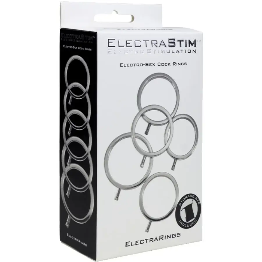Descubre el placer sin límites con los anillos metálicos ElectraRing de ElectraStim. Este pack de 5 anillos unipolares te ofrece contracciones potentes y sensaciones intensas. Mejora tu experiencia sexual y alcanza orgasmos manos libres. Compatible con gel electroconductor y electroestimuladores. ¡Atrévete a explorar nuevas sensaciones!