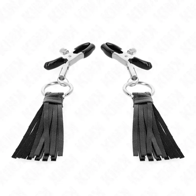 Las Pinzas para Pezones KINK son un accesorio erótico diseñado para aquellos que desean explorar y potenciar sus experiencias BDSM. Con una estética atractiva, estas pinzas cuentan con borlas de polipiel de 6 cm, que añaden un toque de elegancia y sensualidad a cada uso. Su diseño permite una estimulación precisa, lo que las convierte en una opción ideal tanto para principiantes como para expertos en el mundo del BDSM.