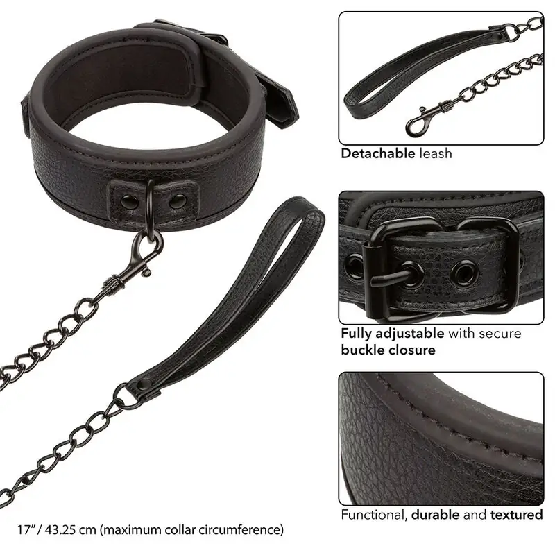 Indulge en el arte de la seducción y el poder con el CALEXOTICS Nocturnal Collar & Leash. Este elegante set está diseñado para quienes buscan un equilibrio perfecto entre el estilo y la funcionalidad. Con un collar ajustable y una correa desmontable, cada sesión se convierte en una experiencia única de dominación y entrega.