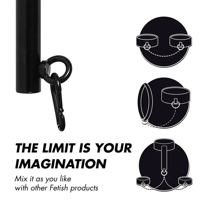 2. Aplicación: Monta la barra según tus preferencias y ajusta los anillos laterales o centrales para añadir esposas o cuerdas bondage.