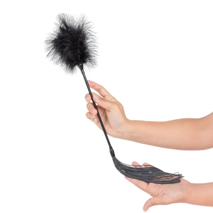 Descubre el placer con el plumero y látigo negro de SECRET PLAY. Ideal para juegos de BDSM y nuevas experiencias. ¡Atrévete a probarlo!
