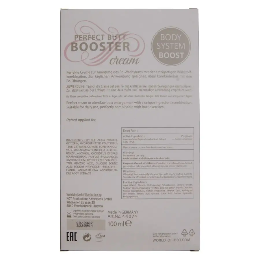 Para potenciar aún más los resultados de tu rutina de belleza, te sugerimos combinar la HOT – XXL BOOTY BOOSTER CREAM con nuestros lubricantes o juguetes íntimos. Estos productos complementan tu experiencia de cuidado personal y ayudan a resaltar tus mejores atributos.
