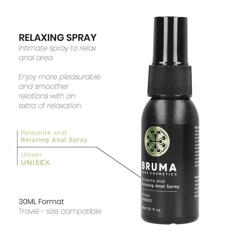 Descubre el spray relajante anal de BRUMA, diseñado para proporcionarte comodidad y placer en tus momentos íntimos. Su fórmula unisex relaja la zona anal, mejorando la experiencia tanto en pareja como en solitario. Con un práctico dispensador y tamaño de viaje, es ideal para disfrutar donde quieras. ¡Haz de tus relaciones una experiencia más placentera con BRUMA!