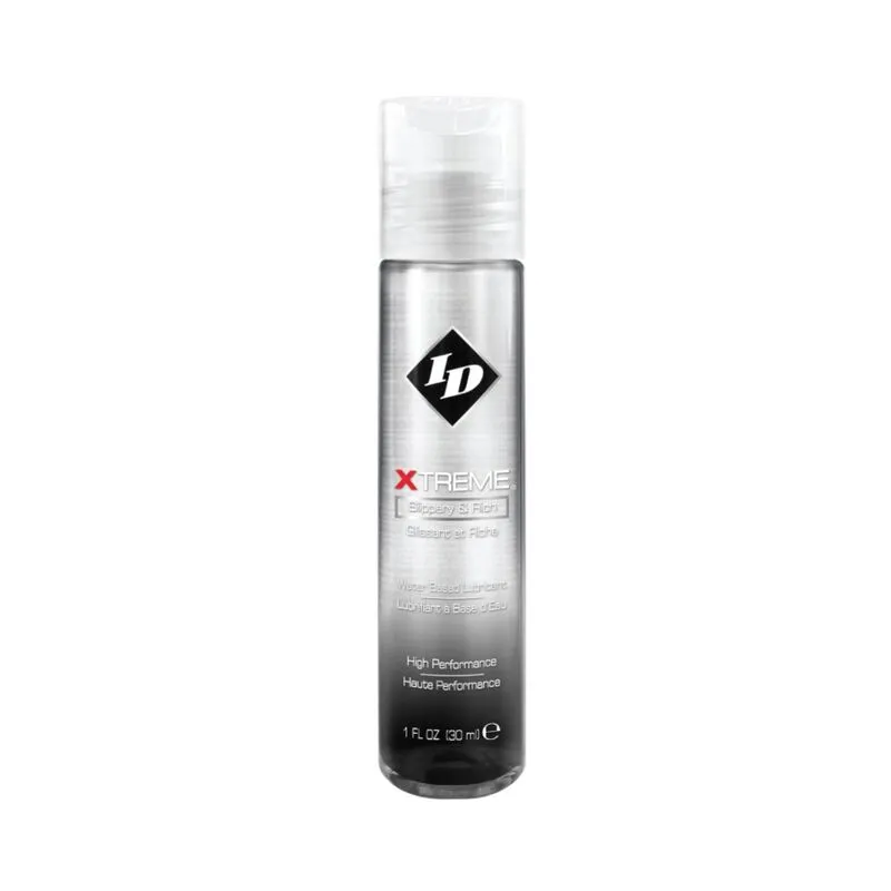 Xtreme es un lubricante personal de uso múltiple, de alta energía y resistencia, diseñado para satisfacer las necesidades de los usuarios de alta intensidad, alta velocidad y contacto. El producto está formulado con Friction Reduction Technology ™ para reducir la resistencia resultante del aumento de la potencia y las altas temperaturas. Xtreme es compatible con condones, seguro para juguetes y sin manchas. La fórmula ha sido rigurosamente probada para garantizar la compatibilidad del condón. Reactiva simplemente añadiendo una gota de agua o saliva. Xtreme es tu primera opción para cualquier experiencia sensual extrema. Nuestra compañía trabajó diligentemente en este producto e incluso lo aprobó como un dispositivo médico FDA 510K. Las ventajas de tener un lubricante hecho de acuerdo con tales estándares son muchas-Usted sabe que está obteniendo un producto de calidad cuando elige ID Xtreme.