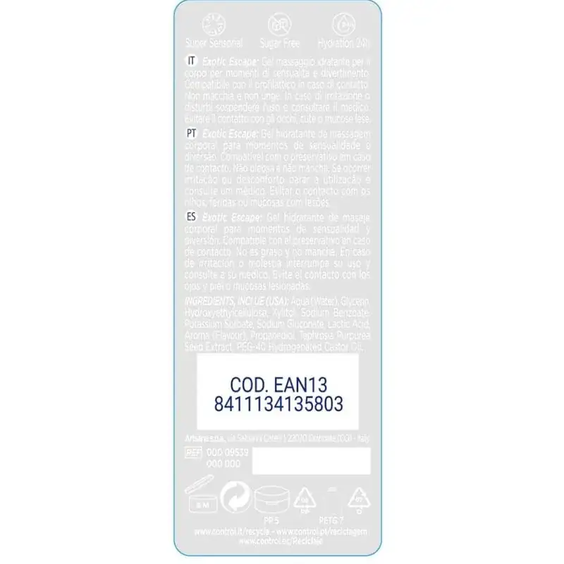 El CONTROL – Gel 2 en 1 Masaje & Placer Exótico es un innovador gel de masaje diseñado para intensificar tus momentos de sensualidad y diversión. Con su fórmula única, no solo proporciona una experiencia de masaje exquisita, sino que también actúa como un estimulante para las zonas erógenas, mejorando así la intimidad y la conexión en pareja.