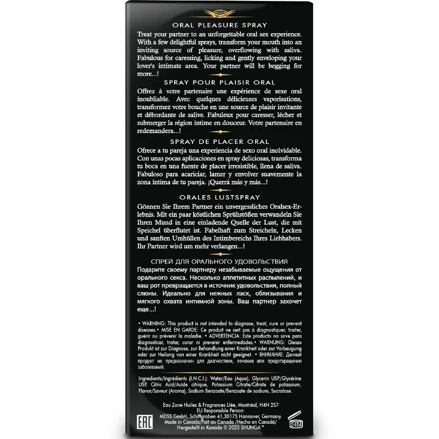 Este spray no es solo un complemento; es un verdadero transformador de tus encuentros íntimos. Con una formulación que potencia la salivación y mejora la textura de tu boca, cada aplicación promete un viaje sensorial único.