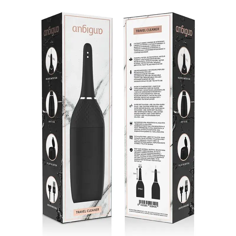 El Anbiguo Ultimate Limpiador Anal Automático es más que un simple limpiador; es tu aliado perfecto para disfrutar de una experiencia anal segura y placentera. Con su sistema automatizado y diseño innovador, este limpiador te asegura una higiene completa, eliminando cualquier preocupación y permitiéndote concentrarte en el placer.