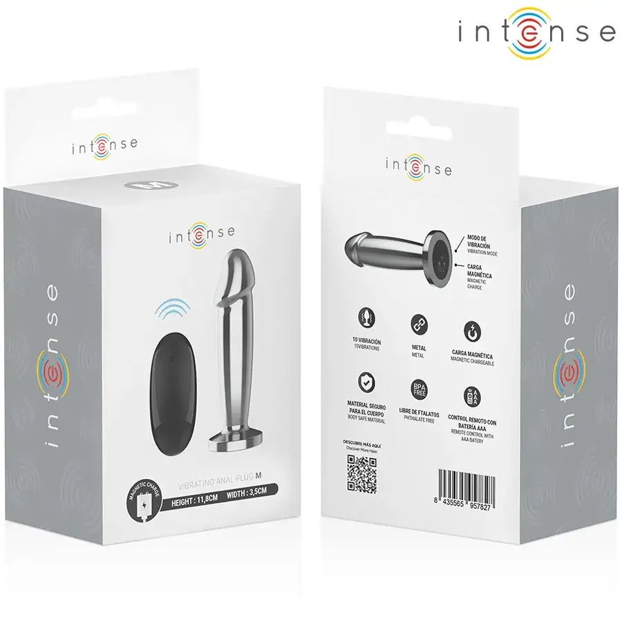 El Plug Anal Vibrador INTENSE en forma de dildo talla M es un juguete erótico diseñado para aquellos que desean explorar el placer anal de manera intensa y sofisticada. Con un elegante diseño y fabricado en aluminio de alta calidad, este plug no solo ofrece durabilidad, sino que también permite disfrutar de sensaciones térmicas personalizables. Puedes optar por una experiencia fría o caliente, adaptándose a tus preferencias y elevando tus momentos de placer a nuevas alturas.