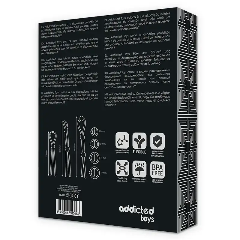 El Kit de 7 Anillas de Silicona Flexible de ADDICTED TOYS es la herramienta perfecta para quienes desean maximizar su placer durante el juego sexual. Este set incluye anillas de alta calidad, diseñadas específicamente para adaptarse a diferentes tamaños y necesidades, brindando una experiencia única y sensual.