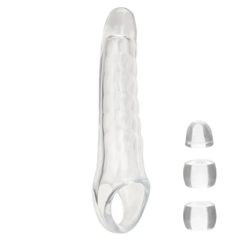 El Performance Maxx Clear Extension Kit es la solución perfecta para quienes buscan mejorar tanto la longitud como el grosor en sus encuentros íntimos. Diseñado con una cabeza sólida ultra suave de 3,75″ / 9,5 cm, este extensor promete experiencias profundamente satisfactorias. Su material transparente y elástico no solo realza tus atributos naturales, sino que también proporciona una sensación realista que te hará sentir en la cima del placer.