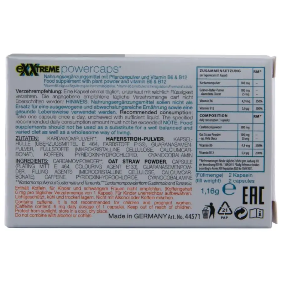 Las características de HOT – EXXTREME POWER CAPS MAN lo convierten en un aliado inigualable para mejorar tu energía y vitalidad. Con su mezcla de ingredientes naturales como el Guarana y el Cardamomo, podrás disfrutar de un rendimiento óptimo.