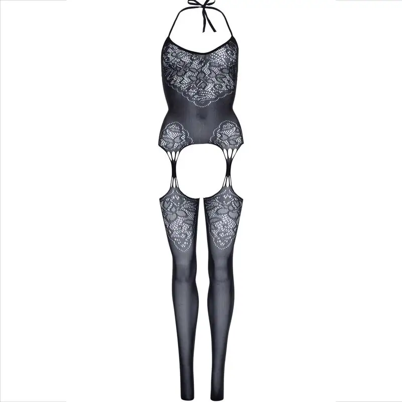 Discover elegance and seduction with our halter-style bodystocking, designed with seamless lace. This unique piece combines the appeal of lace with the comfort of a seamless design, creating a lingerie experience that elegantly highlights your femininity.