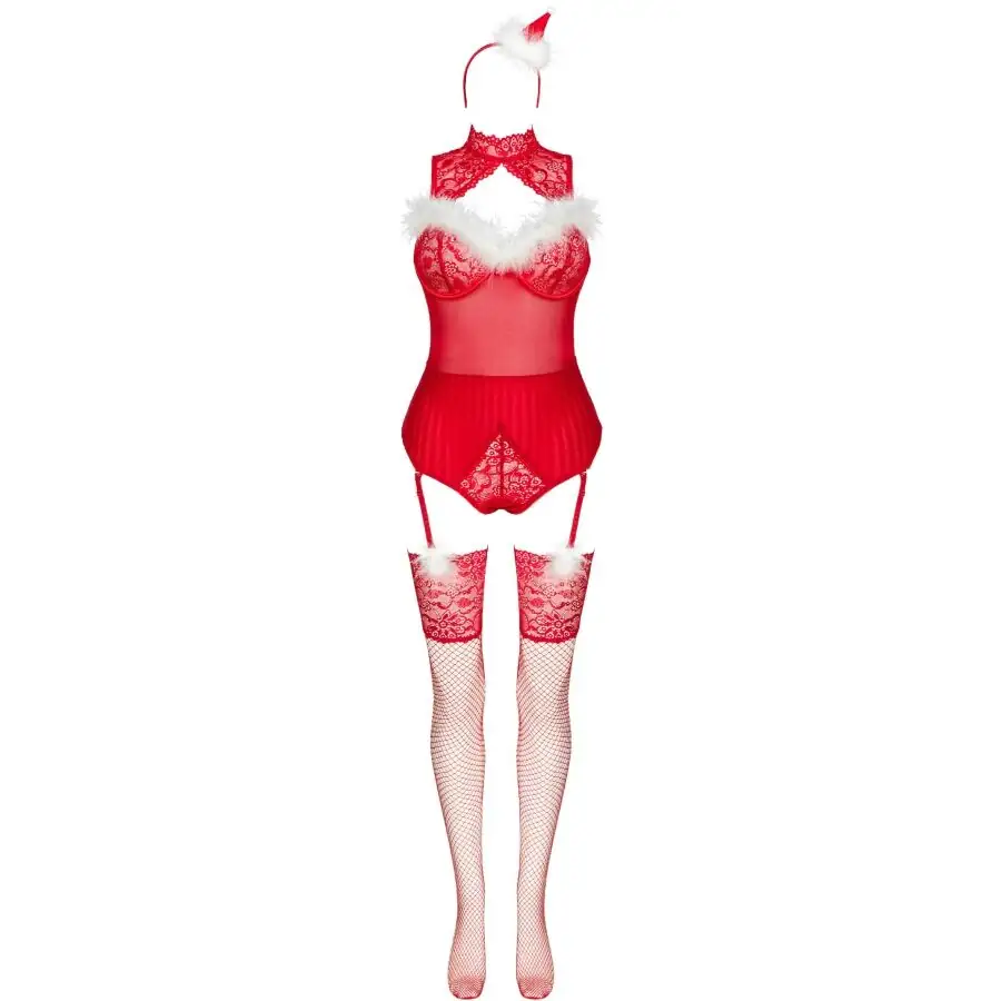Finally, the themed headband, with classic seasonal details, adds a fun and charming touch that perfectly completes the set. Ideal for special celebrations, themed photoshoots, romantic surprises, or simply for enjoying the Christmas spirit with a bold and festive twist, this three-piece set combines comfort, beauty, and the unique charm of the holiday season.