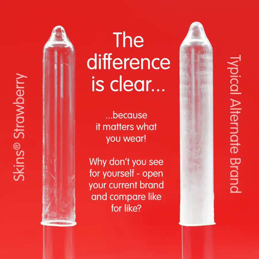 Los preservativos SKINS sabor fresa ofrecen placer y seguridad. Su diseño elegante y aroma afrutado mejoran la intimidad. ¡Atrévete a probarlos!