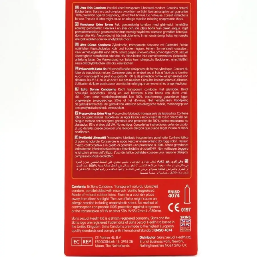 No esperes más para experimentar la conexión más cercana y segura con los preservativos SKINS Ultra Thin. Con un diseño premium y garantizado, tu satisfacción está asegurada. ¡Compra ahora y disfruta de un envío discreto!