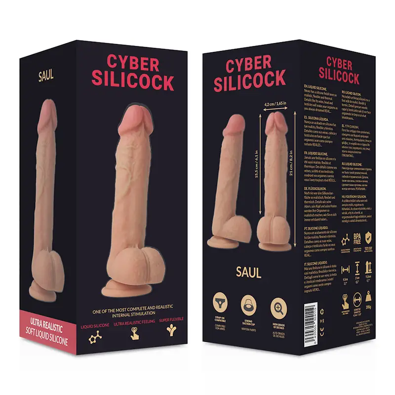 El consolador está hecho de silicona medica liquida. La silicona medica liquida es agradable para la piel almacena rápidamente el calor corporal y hace que su experiencia sea particularmente sensual. Sin embargo, es importante que te asegures de usar un lubricante a base de agua junto con cada juguete de silicona, de lo contrario, el juguete podría dañarse o deformarse. Al limpiar el juguete, obtendrá el mejor resultado con un limpiador de juguetes antibacteriano.LA MARCA CYBERSILICOK
